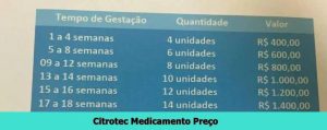 Em Goiânia, o preço do citoteque no olx e mercado livre varia de R$ 400,00 até 1400,00 com a hipotese da quantidade de meses de gestação.